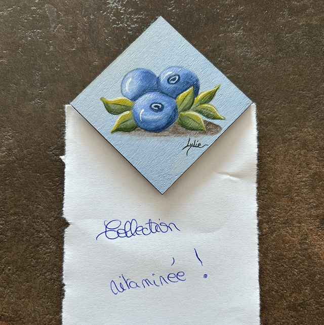 Magnet en bois peint et verni. Dimensions 5x5 cm.